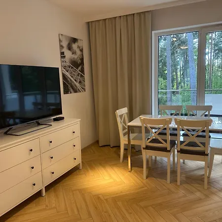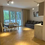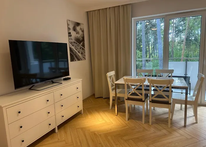 Im Apartment Sosnowy Nadmorski Zakatek Blisko Plazy Z Parkingiem stehen Gästen ein Balkon und eine Sitzecke mit einer Klimaanlage zur Verfügung. Die Unterkunft verfügt über 1 Badezimmer, wo es ein Bidet und eine Dusche gibt. Zudem finden Sie im Badezimmer einen Haartrockner und Badelaken.